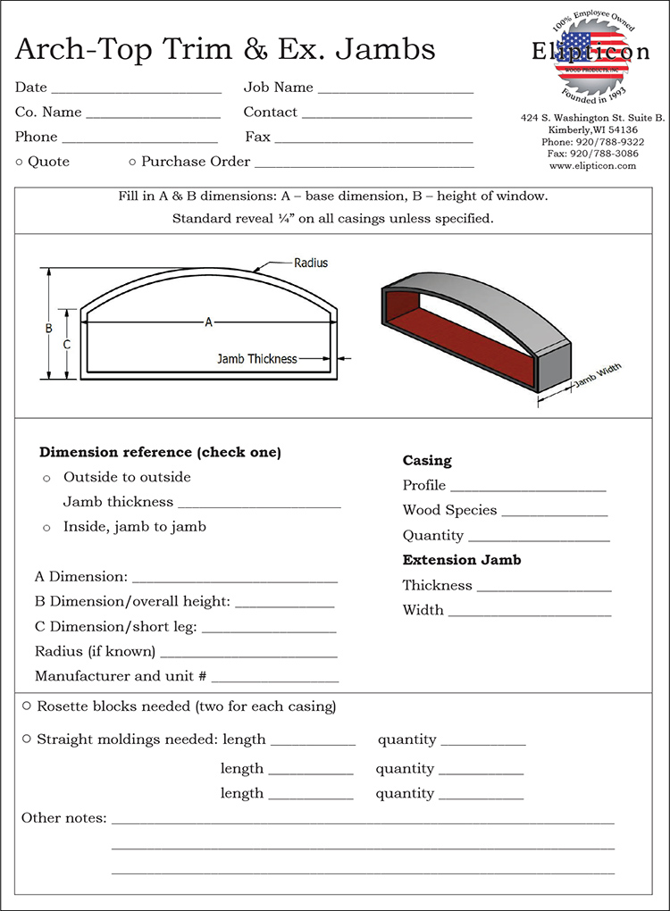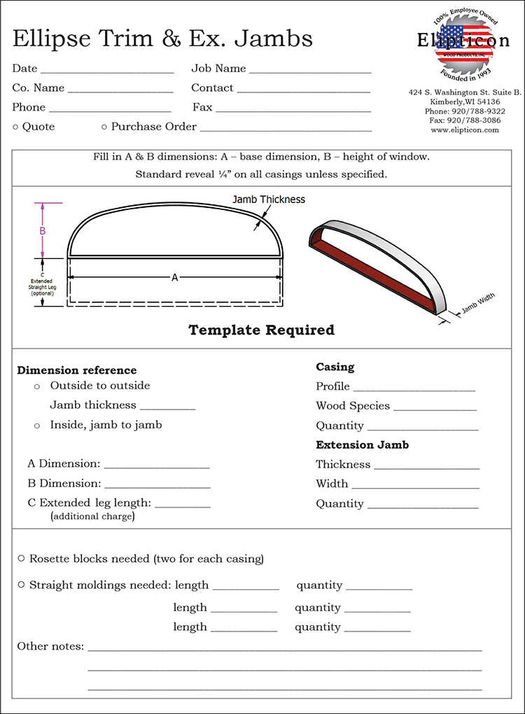 True radius casings no longer need templates—just submit window specs or use Elipticon’s order forms. Templates are only needed for special cases and instructions are online. Templating services are available for a fee, but can often be done safely before window installation.